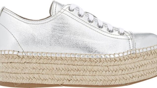 That said, as for wedding-appropriate platform kicks, these silver Miu Miu platform espadrilles (pictured at the top of this post) are the most, if you're in the position to drop like six Benjis on your footwear. (You could wear them again!) If not, these Sam Edelmans are similar and a lot more affordable. Also, erm, have you considered platform faux-Birkenstocks? They're so hot right now and you can wear them into the summer. These platform Supergas are not white but the hearts are super cute and could capture the love I assume you have for your betrothed. Or, for another variation: bejeweled slip-on platform sneakers? Takes care of your something new, something blue.